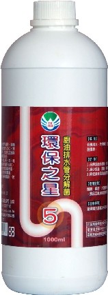 真正解決餐廳廚房的地板油脂問題,本公司推出廚房油脂分解菌,為液體包裝1000cc,含有酵素成份及活菌,長期使用可分解油脂及硬塊,達到除臭功效。無毒、無腐蝕性、不污染環境、安全。每天於晚上休息時以1比50倍-100倍稀釋清洗地板,即可將地板表面油污去除,定期加入一些活菌保養。另如果水管阻塞,每天晚上100cc倒入水管,讓活菌能流入管內。連續20-30天左右,即可將多年來水管內之油塊分解排出。
